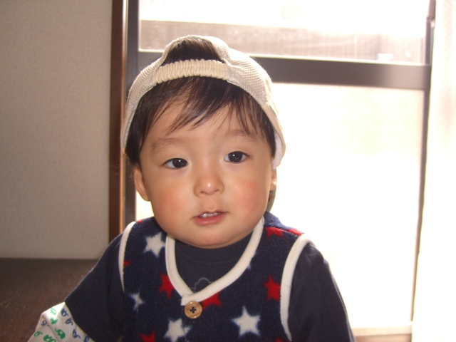 普段から帽子をかぶりつけていないので、帽子をかぶった写真をなかなか撮らせてくれないのですが、一瞬だけおりこうにかぶったのでパチリ☆