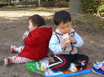 広い芝生の上を歩き回ったらくたびれるかな?と思い、ジュースを持たせておいたら、その模様をパパがデジカメで撮っておいてくれました☆
