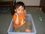 篭や小さなダンボールを見つけては、それに入るもこのすけ。