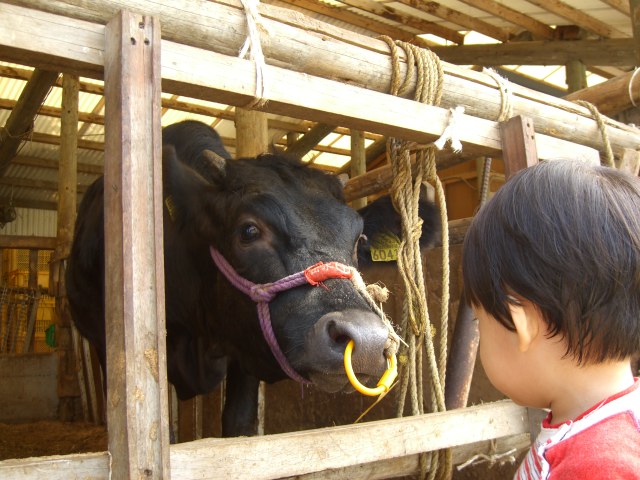 実家の牛舎にいる牛に触ろうとしてみたり。。。