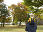帰り道はパパの肩車で視点を変えて、さらにご機嫌なもこのすけ。